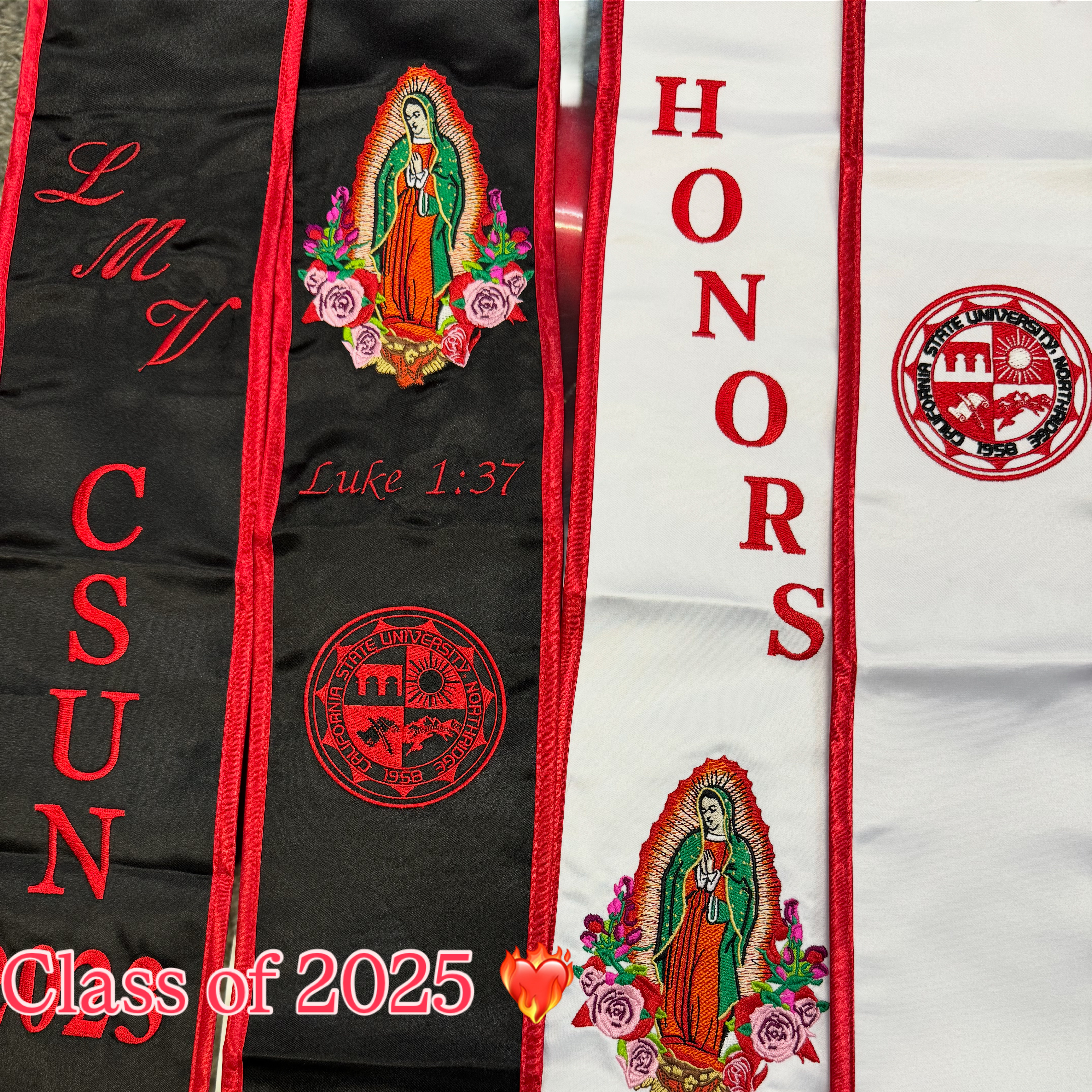 "Your graduation is a huge deal, and your sash should reflect that. At Borders Custom Embroidery, we honestly believe we offer the highest quality custom stoles in all of Los Angeles. Skip the online wait times and bring your blank sash directly to our Pacoima shop. We hustle to provide the fastest turnaround in the San Fernando Valley so you have it in your hands way before graduation day. Whether you go to CSUN, UCLA, USC, or a local high school, we've got you covered for 'Class of 2026', Greek lettering, and custom dedications. Book your spot before our schedule fills up!"